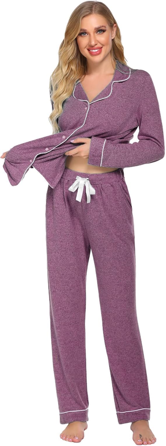 Women's Pajamas Long Sleeve Sleepwear Casual Button Down Loungewear Soft Pjs Set S-XXL
