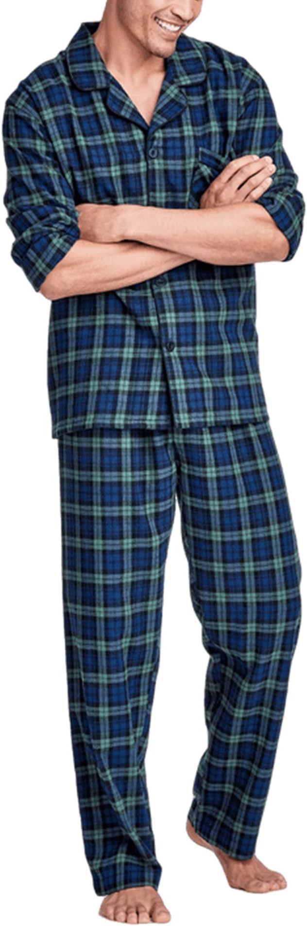 Men's 100% Cotton Flannel Plaid Pajama Top and Pant Set