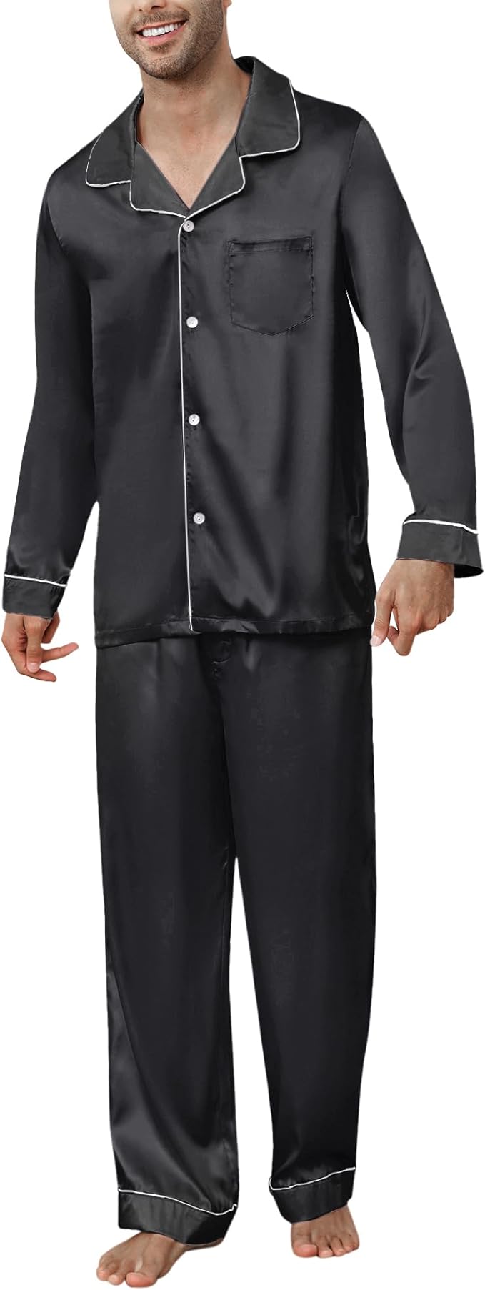 Mens Silk Pajamas Set, Long Sleeve Satin Pajamas for Men Sleepwear Button Down Pjs Set Two-piece