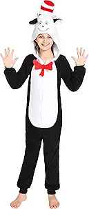 Kids Cat in The Hat Costume, Girls Book Character Costume, Boys Dr Seuss Costume, Children Animal Onesie Novelty One-Piece