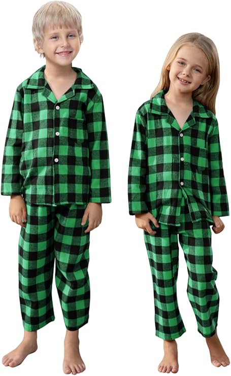 Kids Pajamas Set, Plaid Button Down Pjs for Girls & Boys, 9 Months - 14 Years