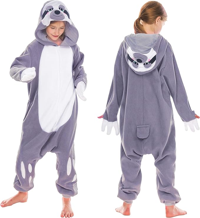 Unisex Child Pajama Plush jumpsuit One Piece Sloth Animal Costume Grey
