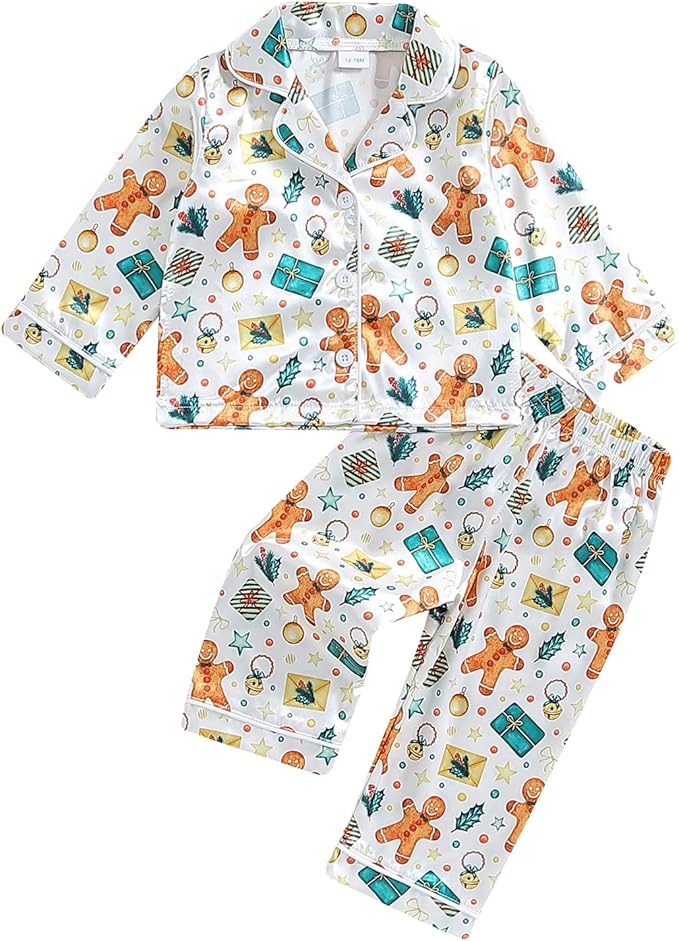Kids Christmas Pajamas Toddler Girl Boy Cute Santa Claus Button Up Shirt Top Long Pants Loungewear Sleepwear