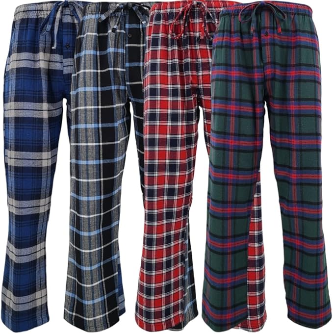 Men's 4 Pack 100% Cotton Flannel Pajama Sleep Pant - Lounge Pants