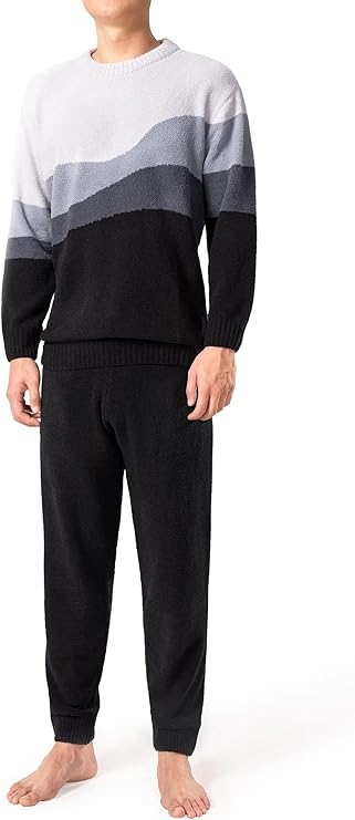 Men's Plush Fleece Sleepwear Warm Cozy Long Sleeve Top & Bottom Pajama Set Nightwear