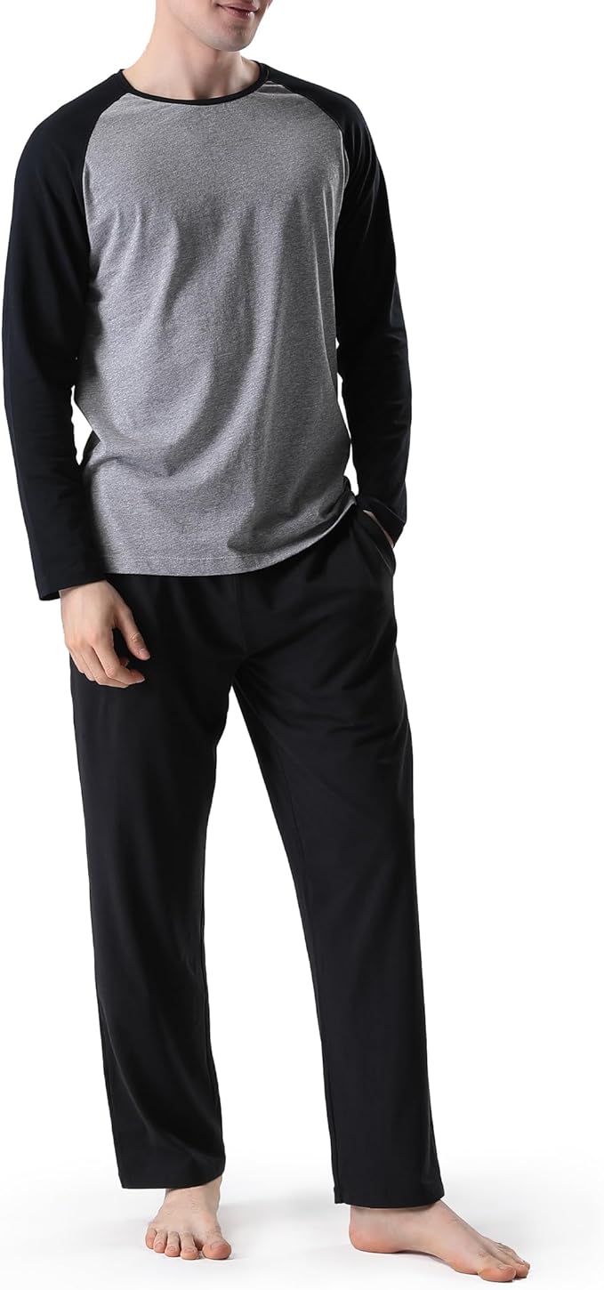 Mens Pajamas Set - Soft Pj Sets for Men Long Sleeve Pajamas Men Cotton Mens Pjs Sets Loungewear with Pockets