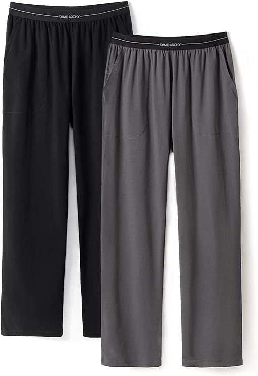 Men's Pajama Pants Cotton Lightweight Pajama Bottoms, Comfy Lounge Pants with Pockets Sleepwear PJ Pants, 2 Pack