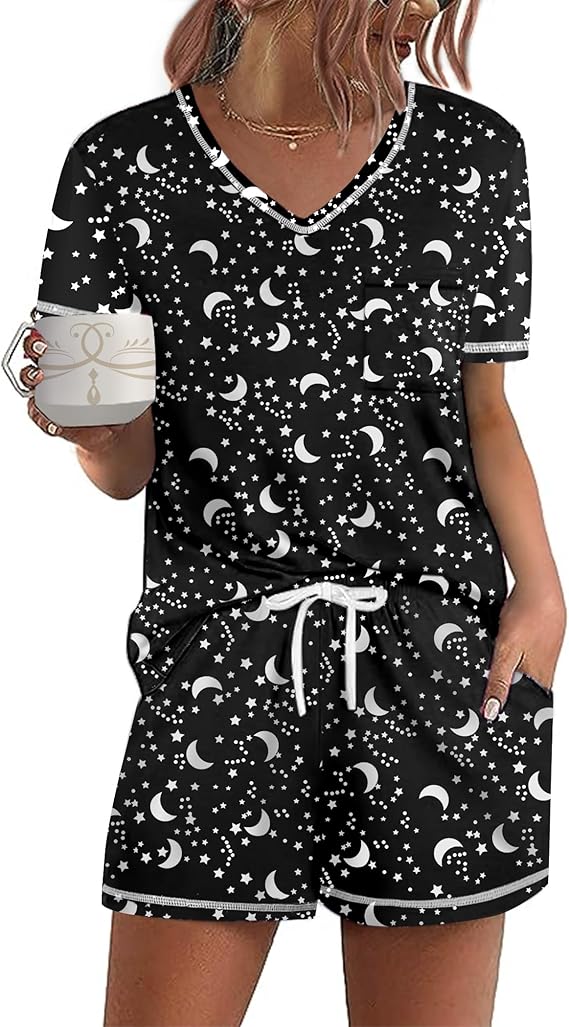 Women's Pajamas Sets Short Sleeve Lounge Sets Sleepwear Casual Two Piece Pjs With Pockets