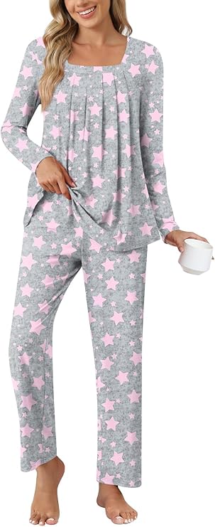 Women's Pajama Set Long Sleeve Pj Sets Two Piece Loungewear Soft Pajama Top and Pants Pjs Sleepwear