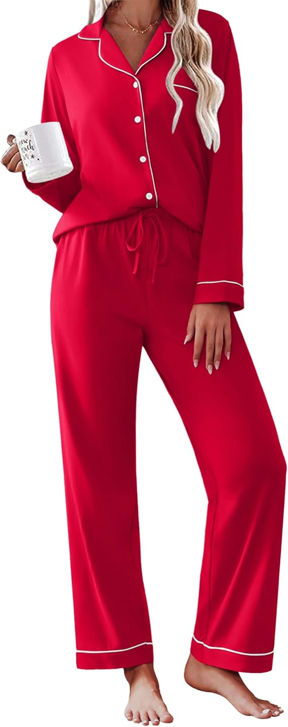 Womens Pajama Sets 2 Piece Long Sleeve Sleepwear Soft Button Down Pjs Lounge Set S-XXL