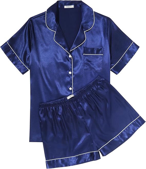 Womens Silk Satin Pajama Sets Soft Short Sleeve Button Down Sleepwear Top and Shorts 2 Piece Pjs Lounge Set S-XXL